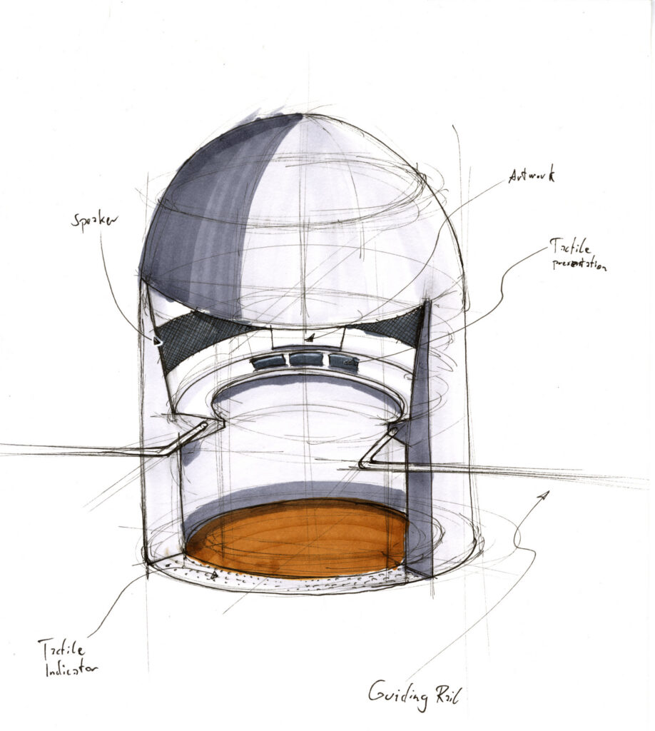 Our design idea was a booth, where one artwork is exhibited, accompanied with tactile representations of specific aspects and an audio guide.